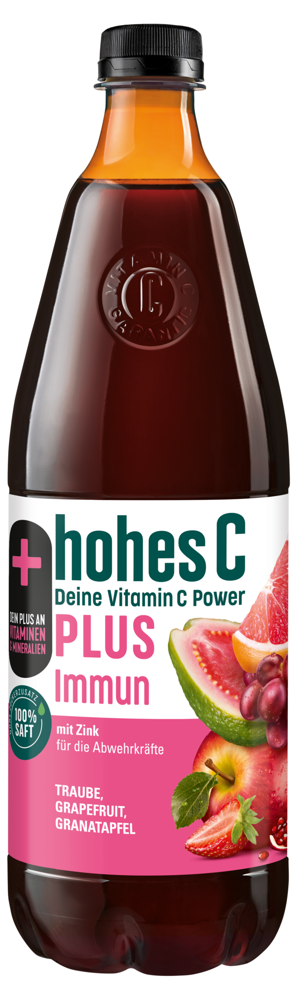 Dein PLUS an Vitaminen: hohes C PLUS Immun deckt bereits mit einem Glas (0,25L) deinen Tagesbedarf an natürlichem Vitamin C und einen wesentlichen Teil an Zink. Vitamin C trägt zu einer normalen Funktion des Immunsystems und zu einem normalen Energiestoffwechsel bei. Zink trägt zur Erhaltung normaler Knochen, Haare, Haut, Nägeln und Sehkraft bei. Eine ausgewogene Ernährung und gesunde Lebensweise werden empfohlen.